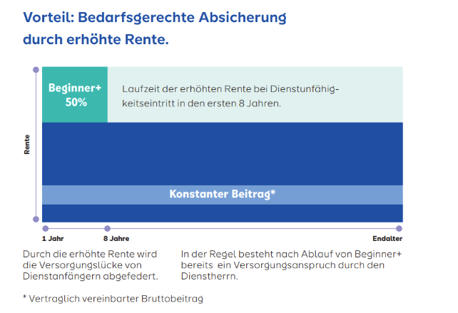 Viele dienstjunge Beamte unterschätzen das finanzielle Risiko einer Dienstunfähigkeit massiv. Denn ihr Versorgungsanspruch durch den Dienstherrn ist in den ersten Jahren minimal oder nicht vorhanden.